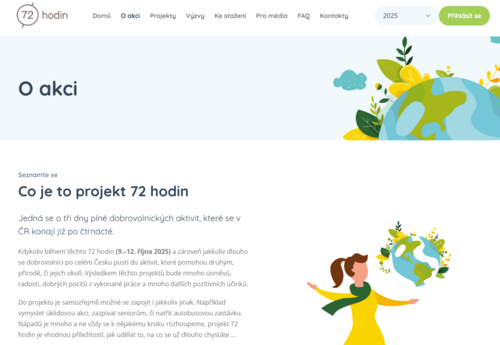 Jedná se o tři dny plné dobrovolnických aktivit, které se v ČR konají již po čtrnácté. Kdykoliv během těchto 72 hodin (9.–12. října 2025) a zároveň jakkoliv dlouho se dobrovolníci po celém Česku pustí do aktivit, které pomohou druhým, přírodě, či jejich okolí. Výsledkem těchto projektů bude mnoho úsměvů, radosti, dobrých pocitů z vykonané práce a mnoho dalších pozitivních účinků.