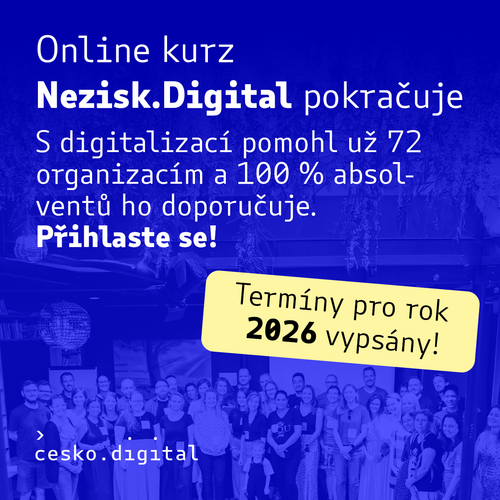 Kurz pořádá neziskovka Česko.Digital. Registrované sociální služby mohou žádat u Nadace ČEZ o grant, který plně pokrývá kurzovné i další náklady na rozvoj.