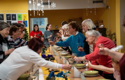 Setkání se zúčastnilo 14 seniorů, 7 studentek, ředitelka TOTEMu a dobrovolnice Mája, která se proměnila v andílka a s úsměvem pomáhala a rozdávala dárečky. U jednoho stolu se tak potkaly generace i role – přirozeně, lidsky a s radostí ze společného času.